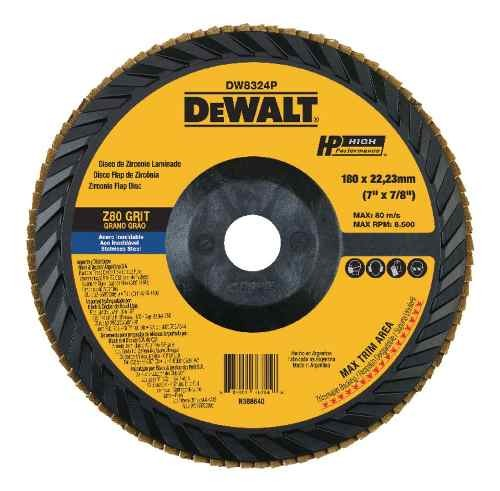 Características: Condición del ítem : Nuevo Marca : Dewalt MPN : DW8324P-AR Disco Flap Zirconio 7p Grano 80 DW8324P-AR Especificaciones: Diámetro: 7" Eje: 7/8" Grano: 80 Material Base: Plástico Características: Grano de Zirconio: 3 veces más rápido que los discos de fibra de resina. Tela abrasiva de óptima calidad: Longevidad 15 veces mayor que los discos de fibra de resina. Respaldo de fibra de vidrio: Facilita óptima rectificación a un ángulo de 10-25 grados. Permite uso completo del disco No marca la pieza de trabajo.