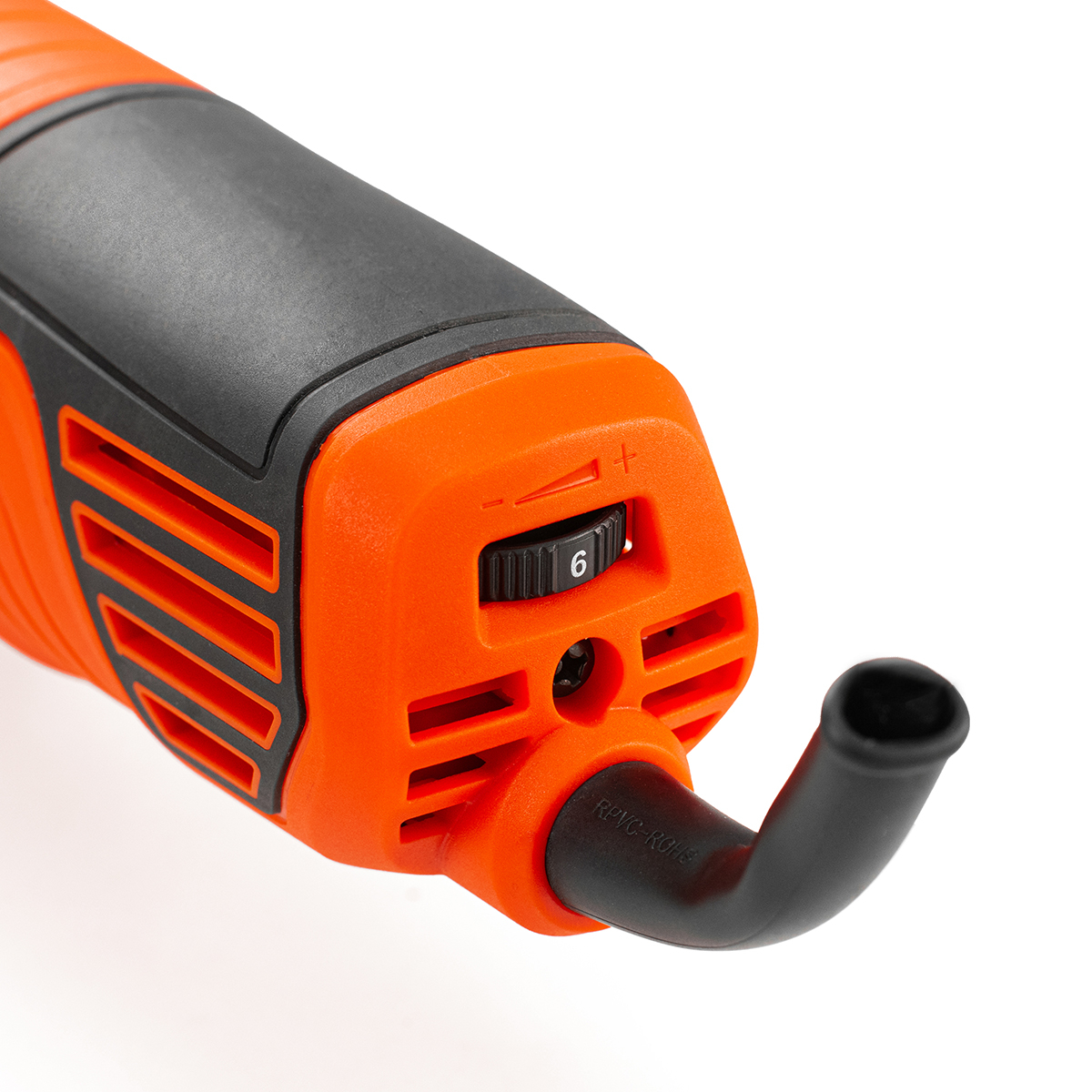 Una evolución en el mundo de las amoladoras angulares, diseñada para quienes buscan máxima potencia y exigencia en una amoladora de 125mm. Con una potencia de 1.200W distinguida, y velocidad variable de 4.000 a 12.000 RPM, es ideal para adaptarse a distintos tipos de trabajo de corte, desbaste o pulido ofreciendo gran eficiencia. Perfecta para trabajos en metal, mampostería y madera, la HAA002-A es una herramienta indispensable para cualquier profesional autónomo de herrería, carpintería mecánica o construcción. Es ergonómica, incluyendo un mango ajustable en 3 posiciones, lo que permite adaptarse a distintas tareas y ofrecer mayor control en cortes difíciles o trabajos de desbaste prolongados. Además, su peso ligero de 2,5kg. hace que sea fácil de maniobrar sin comprometer la estabilidad. Gracias a su sistema de gatillo antipolvo, garantiza una mayor vida útil y menos interrupciones por mantenimiento. • Sistema Constant Electronic: mantiene una velocidad constante bajo carga, asegurando cortes precisos y uniformes en todo momento. • Función Soft Start: permite un arranque suave, evitando tirones bruscos que podrían comprometer la precisión del trabajo.