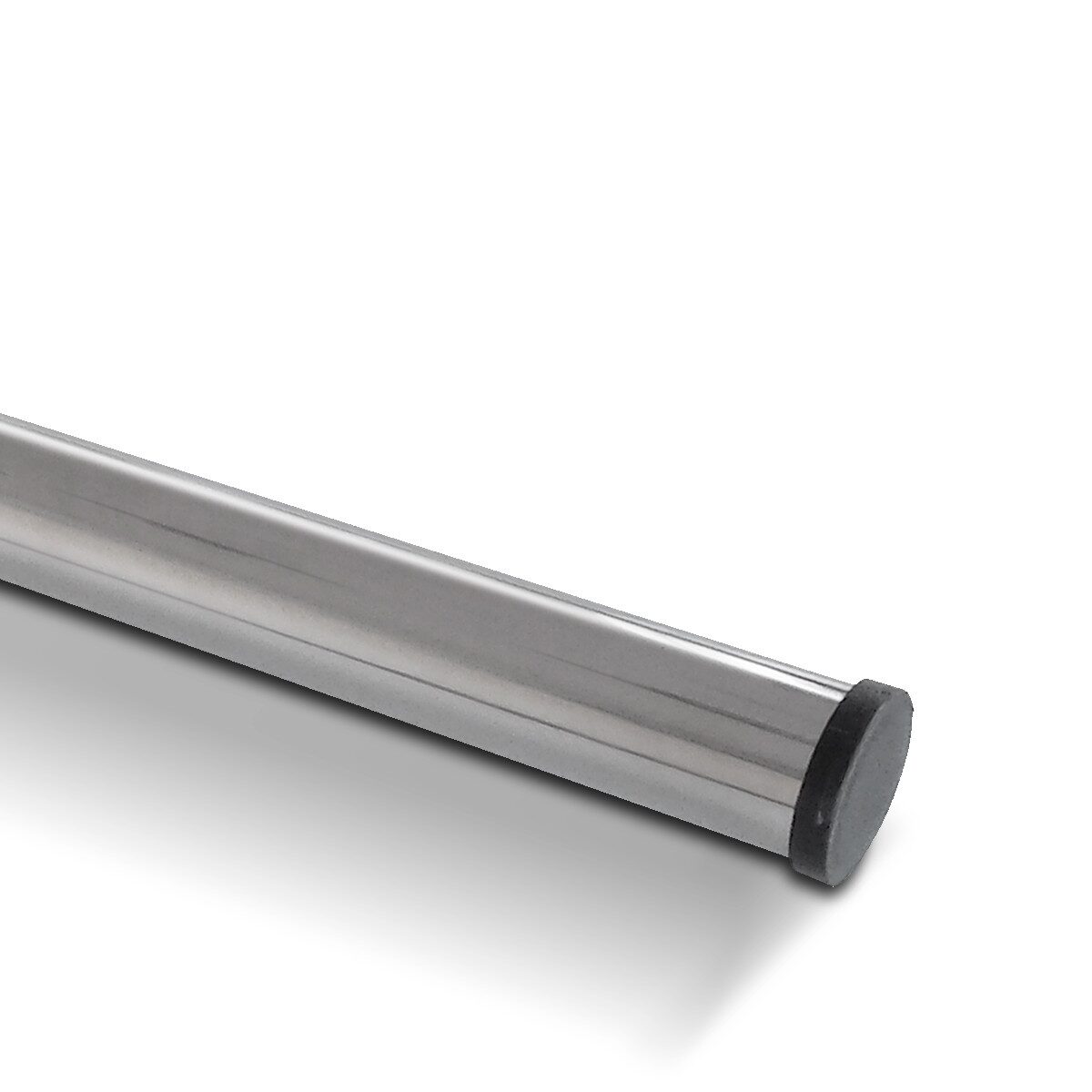 Barra recta de acero inoxidable 304, la misma tiene una longitud de 120 cm, un diámetro de Ø 38,1mm, y viene provista con regatones de PVC en sus extremos. Su delicado diseño y terminación pulido brillante le permite a los bañistas realizar movimientos mas cómodos y seguros dentro de la piscina.