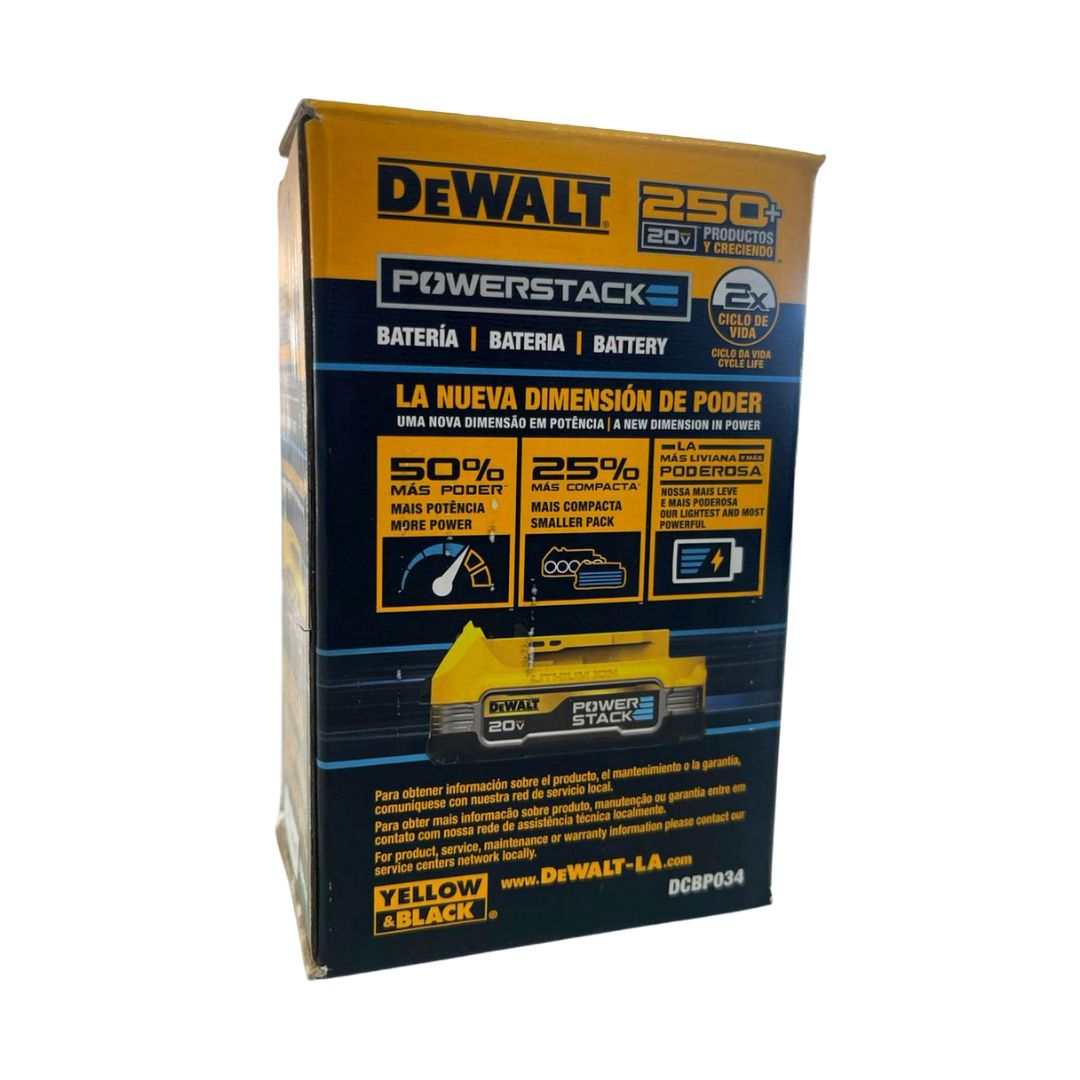 Con la batería Compacta 20V MAX* POWERSTACK™ de DEWALT. La nueva batería de celdas planas apilables está diseñada para la industria de la construcción. Este revolucionario diseño marca una nueva era de desempeño para las herramientas inalámbricas DEWALT, haciendo de esta batería nuestra más potente, compacta y liviana.