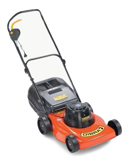 Cortadora de Césped eléctrica con exclusivo Sistema Regulador de 6 posiciones de corte y Canasto Recolector. Motor con freno electromagnético. Se detiene dentro de los 3 segundos ante corte de energía. Sistema de corte con tope para impactos.