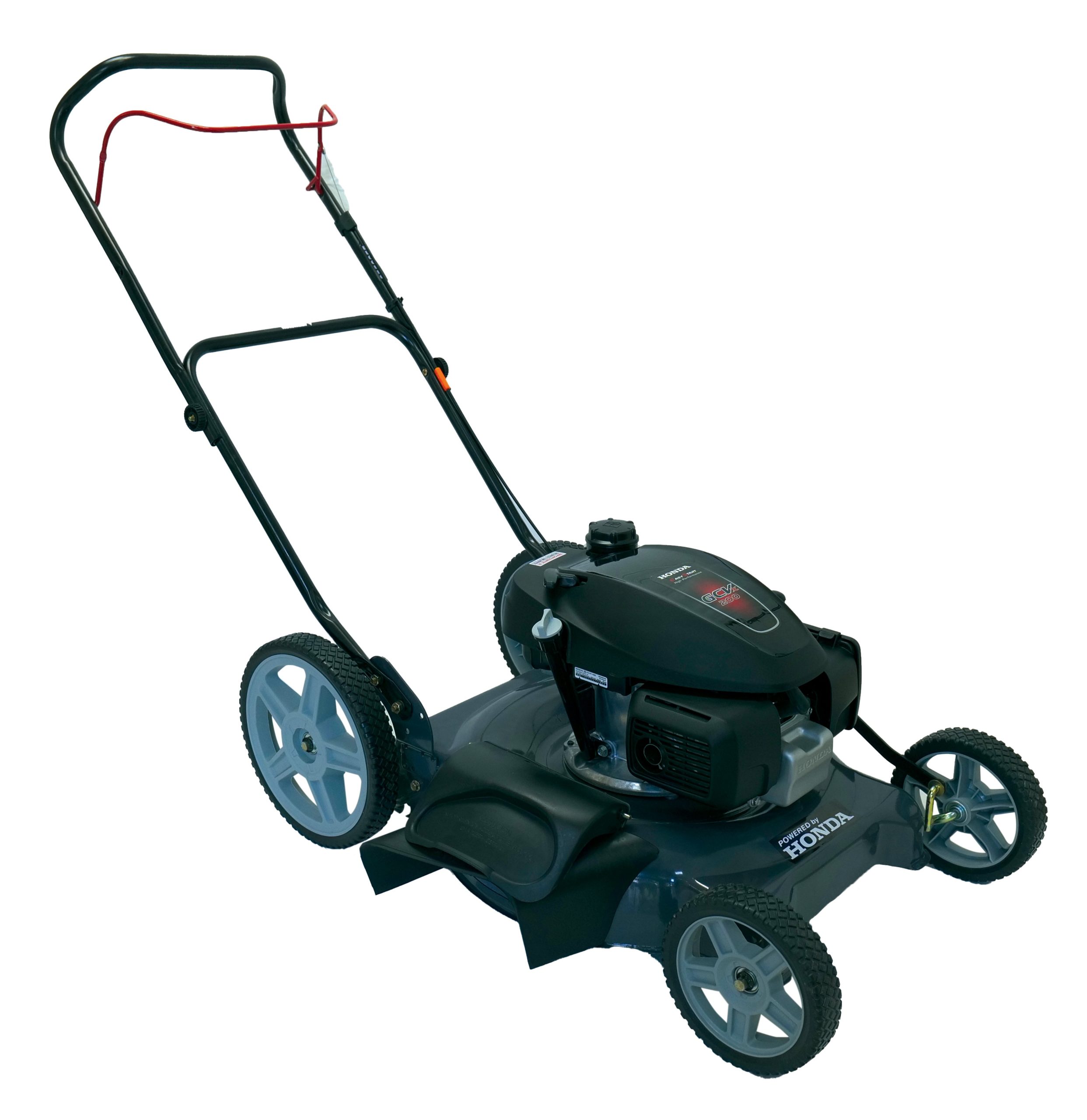 Cortadora de césped naftera Dibra, Motor Honda GCVX 200. Con salida lateral y trituradora. Regulador de altura. Lavado de carcasa. Ruedas altas (con rulemanes).  Sistema de descarga lateral . Sistema triturador "mulching", el residuo de cesped es triturado y  se incorporan al suelo como fertilizante.