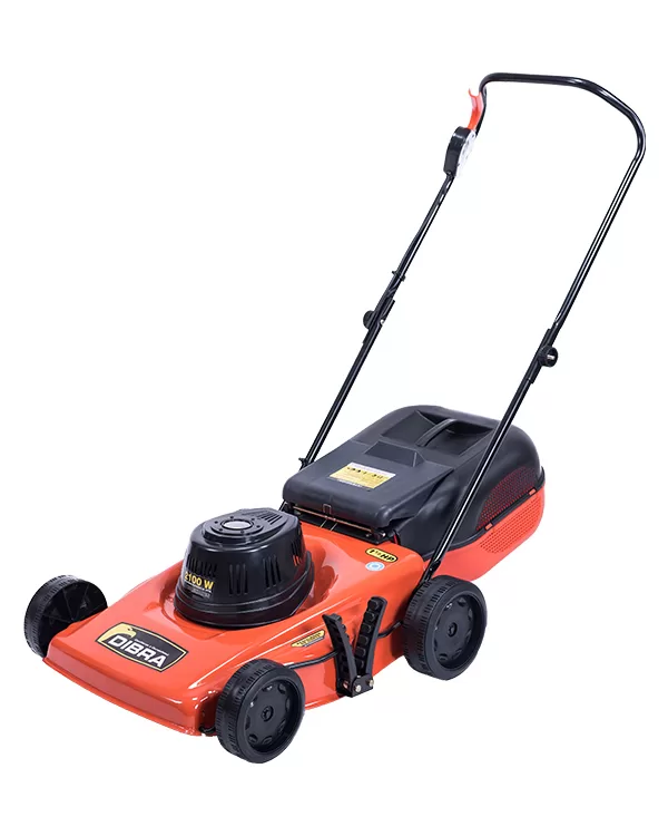 Cortadora de Césped eléctrica con exclusivo Sistema Regulador de 6 posiciones de corte y Canasto Recolector. Motor con freno electromagnético. Se detiene dentro de los 3 segundos ante corte de energía. Sistema de corte con tope para impactos.