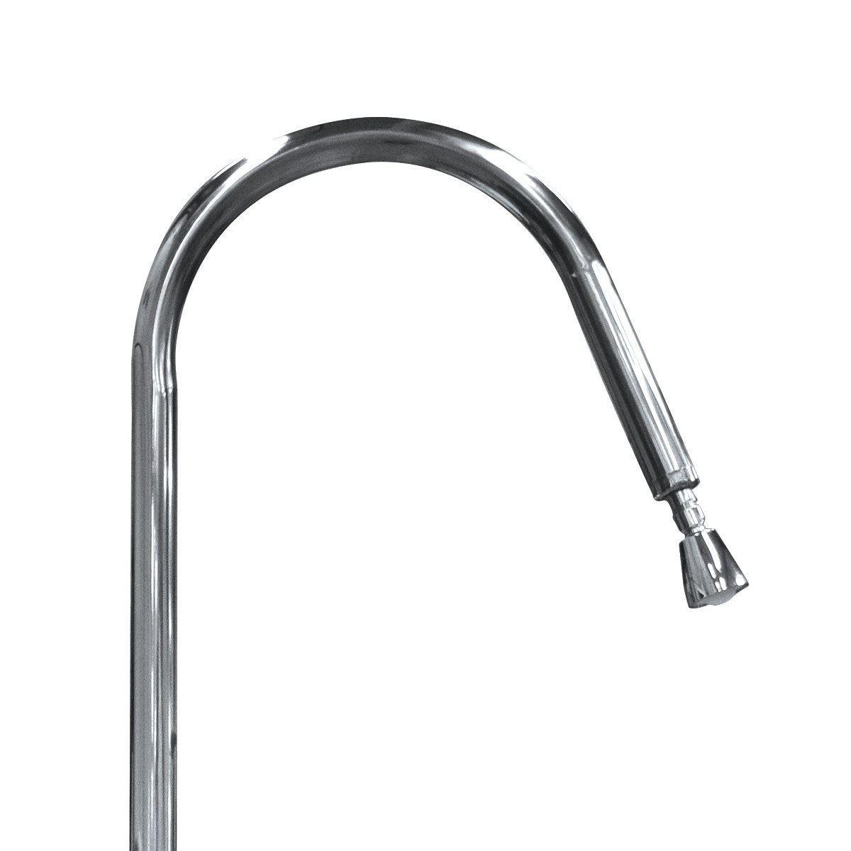 Ducha bastón, de acero inoxidable AISI 304 de diámetro Ø 38,1, con terminación pulido brillante. Es importante utilizar la fijación con el anclaje provisto con puesta a tierra por mayor seguridad. Con la finalidad de un baño previo para eliminar impurezas del cuerpo, se ha vuelto imprescindible para mantener la calidad del agua de la piscina.