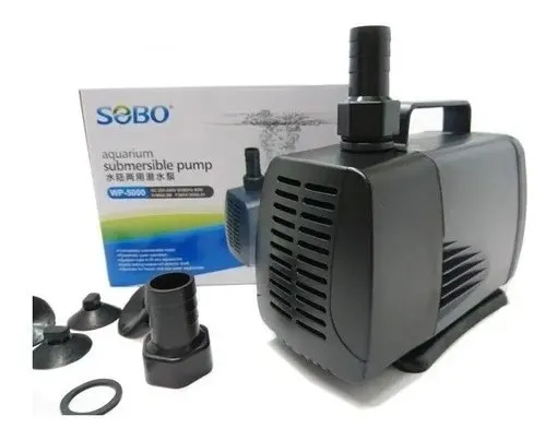 Bomba Sumergible SOBO WP5000 3000L/H 3Mt altura. Ideal para Fuentes Peceras Hidroponia. Operación silenciosa con el mayor rendimiento. Proporciona una poderosa circulación de agua para un flujo fuerte y constante. Ahorro de energía y respetuoso del medio ambiente. Adecuado para acuarios de agua marina y agua dulce. No se sobrecalienta y opera silenciosamente; adecuado para decoraciones de coral.
