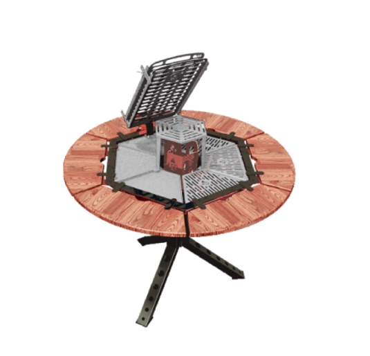 | Incluye | Parrilla. Estaca/Cruz. Brasero. 3 Planchas individuales extraíbles. 3 Parrillas individuales extraíbles. 6 tablas de madera individuales extraíbles. |