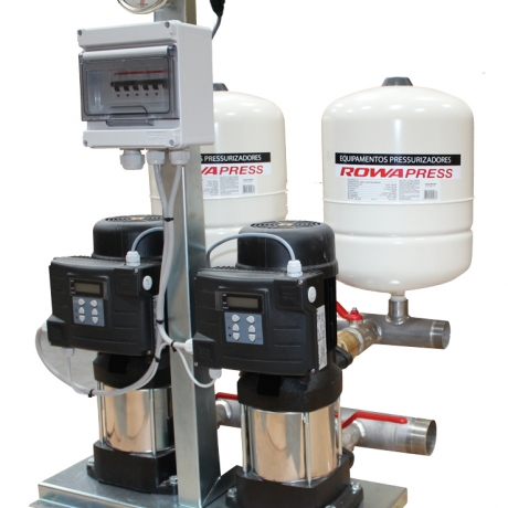 Ventajas Fácil de instalar Bajo consumo de energía Versátil en funcionamiento Funcionamiento Integrado directamente en el motor, es posible ajustar la velocidad para que el usuario mantenga siempre la misma presión al cambiar la demanda de agua. Cuando la presión del sistema cae por debajo del umbral establecido, el módulo inicia la primera bomba del grupo para restablecer la presión del punto de ajuste; la velocidad de rotación de la bomba varía de acuerdo con la demanda de agua, por lo que a mayor demanda tendrá una mayor velocidad hasta alcanzar el máximo establecido; luego, si la planta está realizando un mayor rendimiento, el módulo iniciará la segunda y luego la tercera bomba para mantener estable la presión. A medida que disminuye la demanda de agua, se producirá una reducción en la velocidad de la última bomba hasta que se apague. El módulo sigue funcionando con la primera bomba hasta que se alcanza la velocidad mínima establecida, si no hay demanda de agua, la bomba se detendrá. El VARIO 3-20 está equipado con cinco modos de funcionamiento para satisfacer diferentes necesidades. Características Tensión de alimentación: 3 x 380-500 VCA Voltaje de salida: 3 x 380-500 VCA Máximo Voltaje: hasta 2x11 kW Frecuencia: 50/60 Hz Corriente de: hasta 20 amperios Grado de protección: IP55 Máxima Temperatura Ambiente: + 50 ° C Filtro de alimentación eléctrica EMC Transductor de presión: 0-5 voltios 0-10 bar Conectividad: interfaz en serie RS 485 Contactos opcionales: 3 (punto de Mandato colector Acero inoxidable AISI 304 con: 2 válvulas esféricas 2 válvulas de retención 1 manómetro 2 sensores de presión Base En chapa galvanizada completa con patas anti vibración Colector de aspiración Acero inoxidable AISI 304 con 2 válvulas esféricas