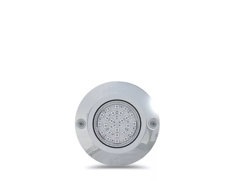 Luminaria subacuática para todo tipo de piscinas y espejos de agua, con cuerpo de ABS y policarbonato, y aro de acero inoxidable. Brindan una excelente potencia de iluminación, con niveles muy bajos de consumo de energía.