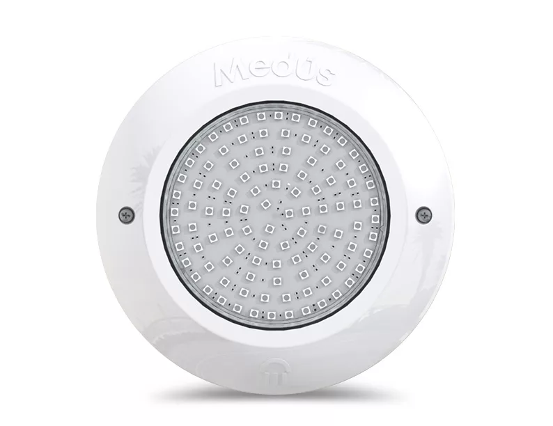 Luminaria subacuática para todo tipo de piscinas y espejos de agua, con cuerpo de ABS y policarbonato, y aro de acero inoxidable. Brindan una excelente potencia de iluminación, con niveles muy bajos de consumo de energía.