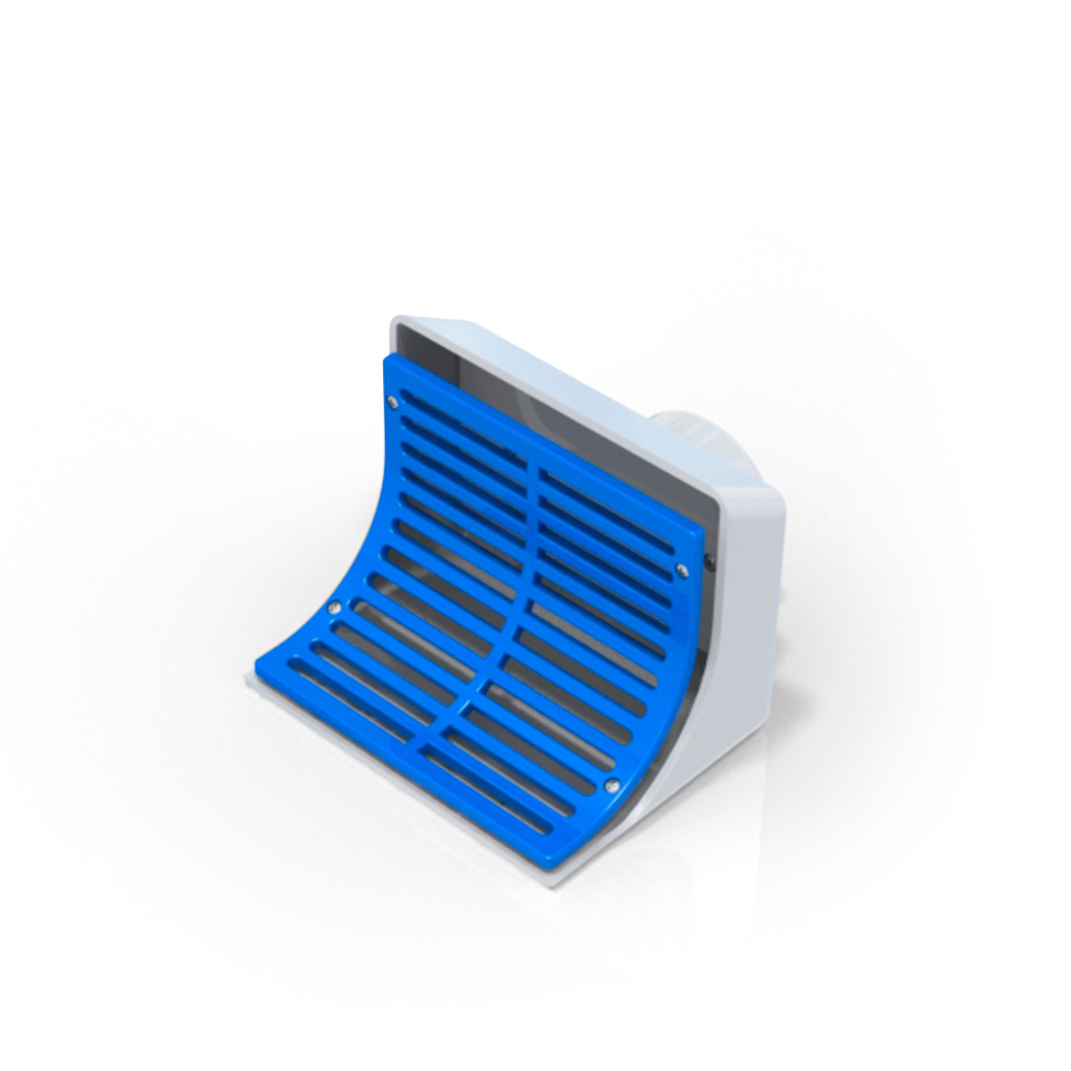 Toma de fondo Vulcano para piscinas de fibra de vidrio, con rejilla flexible de aberturas pequeñas, sujeta con tornillos parker. Fabricadas en poliestireno de alto impacto, cuenta con 1 toma de rosca hembra de 2". Éste modelo está diseñado específicamente para instalarse en una esquina de la pileta que garantice el desagote total de la misma.